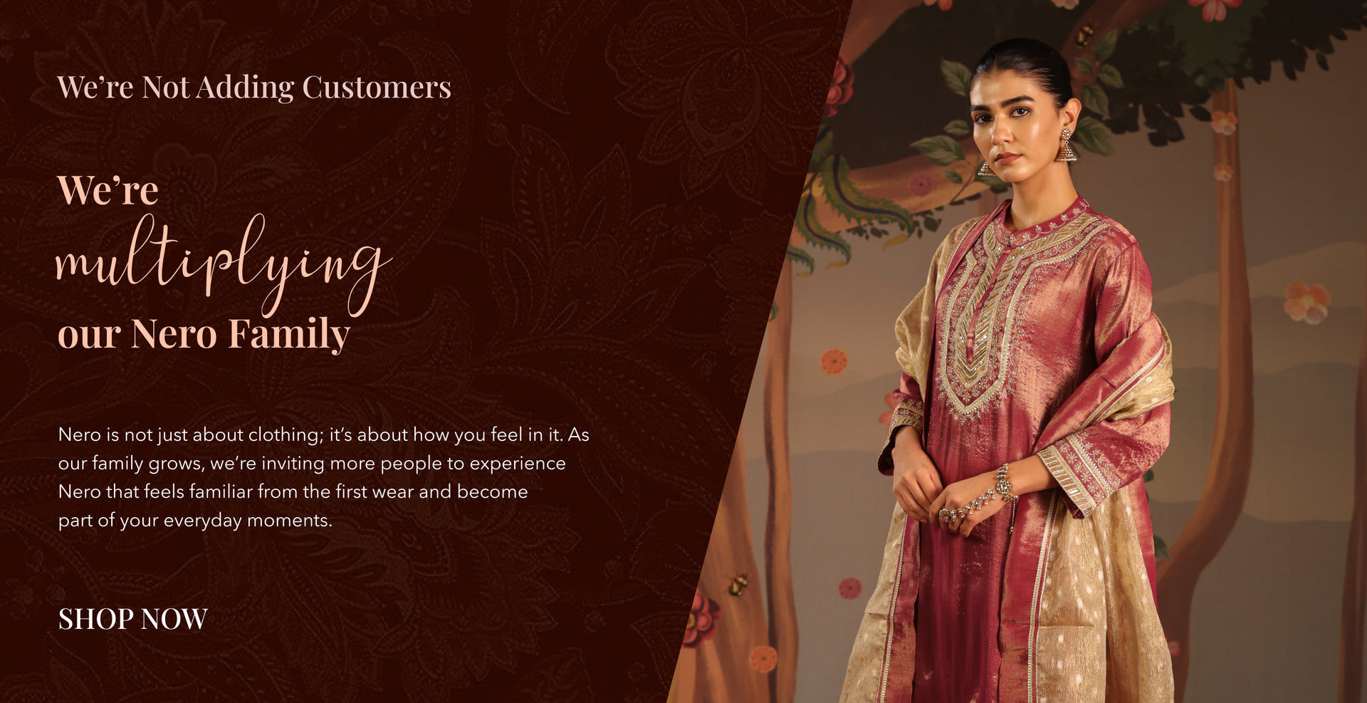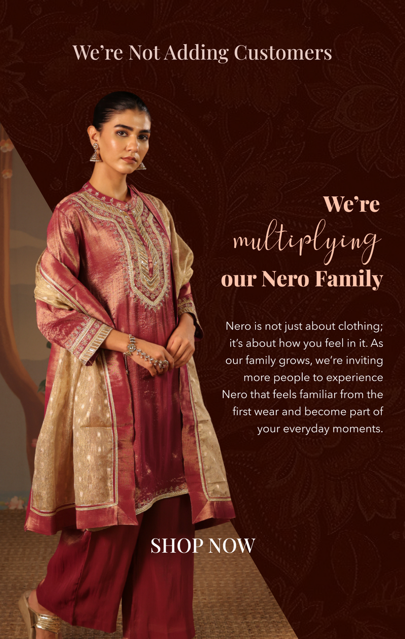 Gets your hands on an ethnic wear collection for women and men available online at neroindia.com. Find velvet, chikankari, cotton, and the latest styles for all occasions. Serving that fresh vibe our beautiful womens dresses with sleeves are sure to fetch you tons of compliments! So, don’t wait anymore.