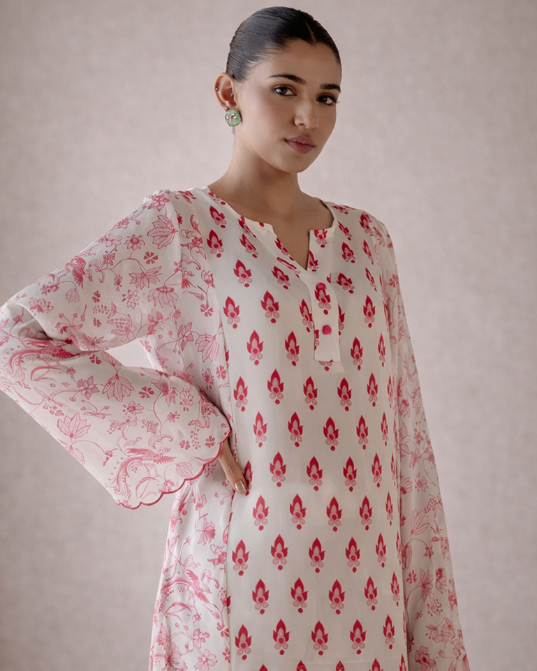 -This top features a vibrant Buta & intricate prints, creating a stylish look.