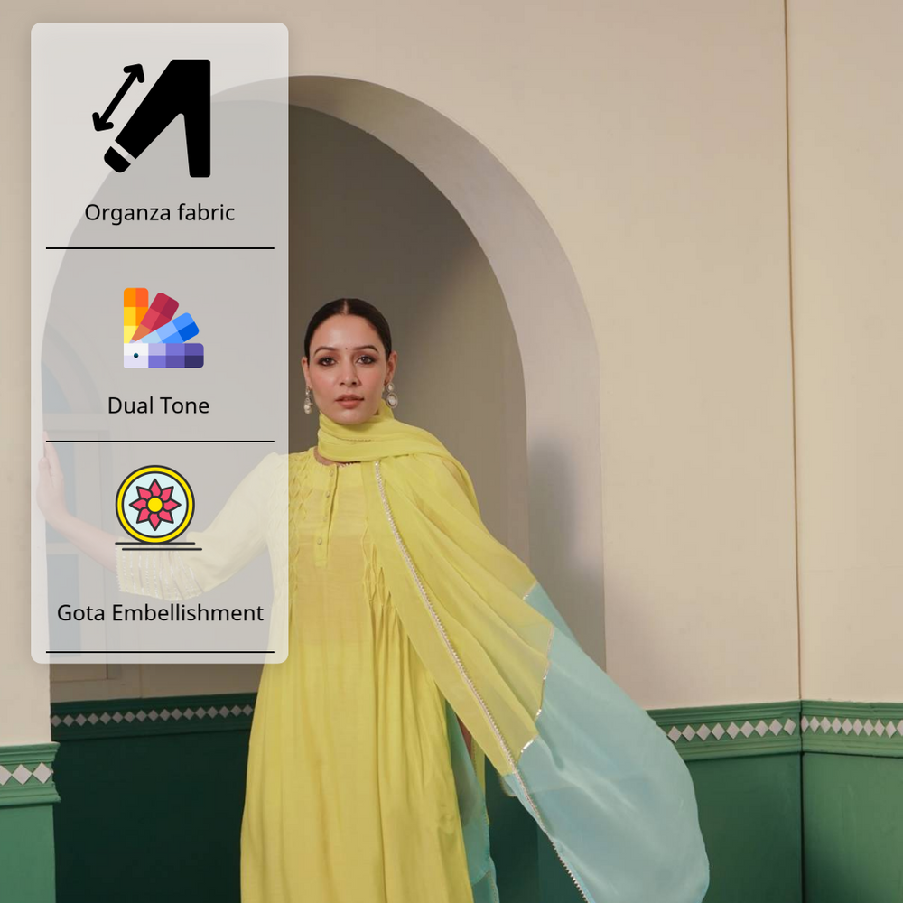 -Pair it with a Wide Leg Pant in Neon Green Modal fabric embellished with Gota.