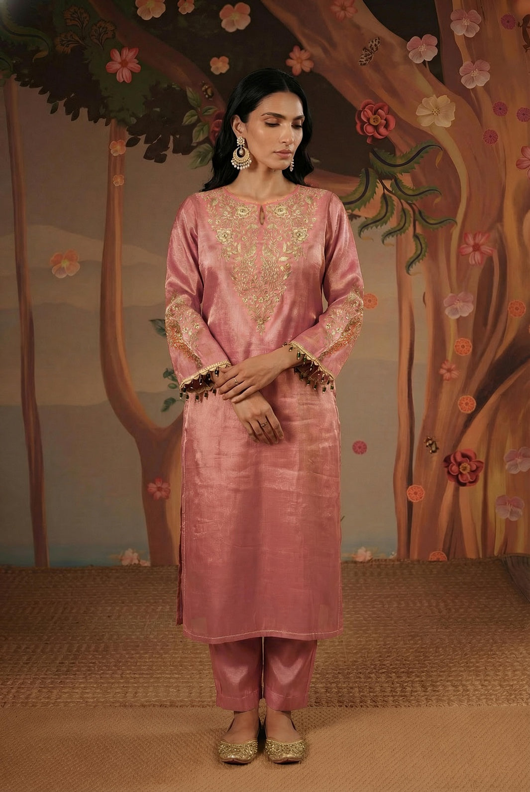 Peony Peacock Zari Kurta with Narrow Pants - Set of 2