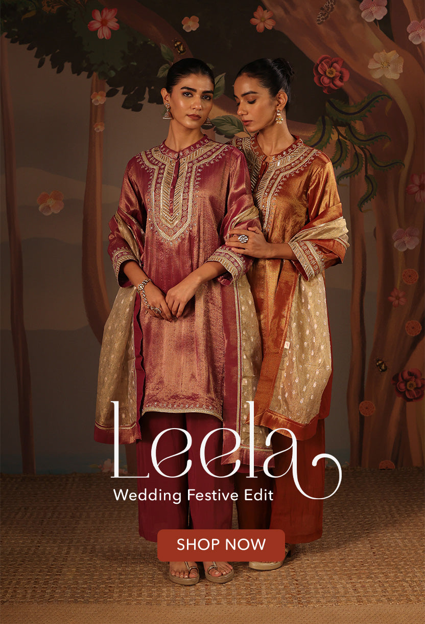 Rustic Zari Tissue Kurta with Flared Pants and Dupatta - Set of 3