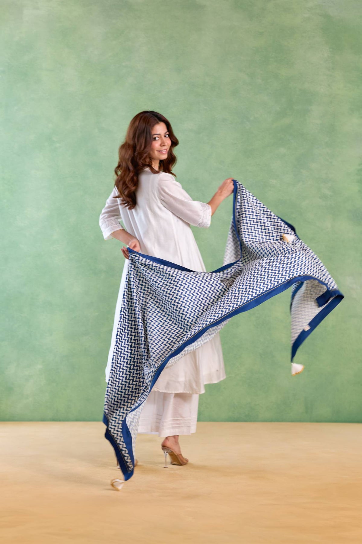 Dupatta Color- Blue-White