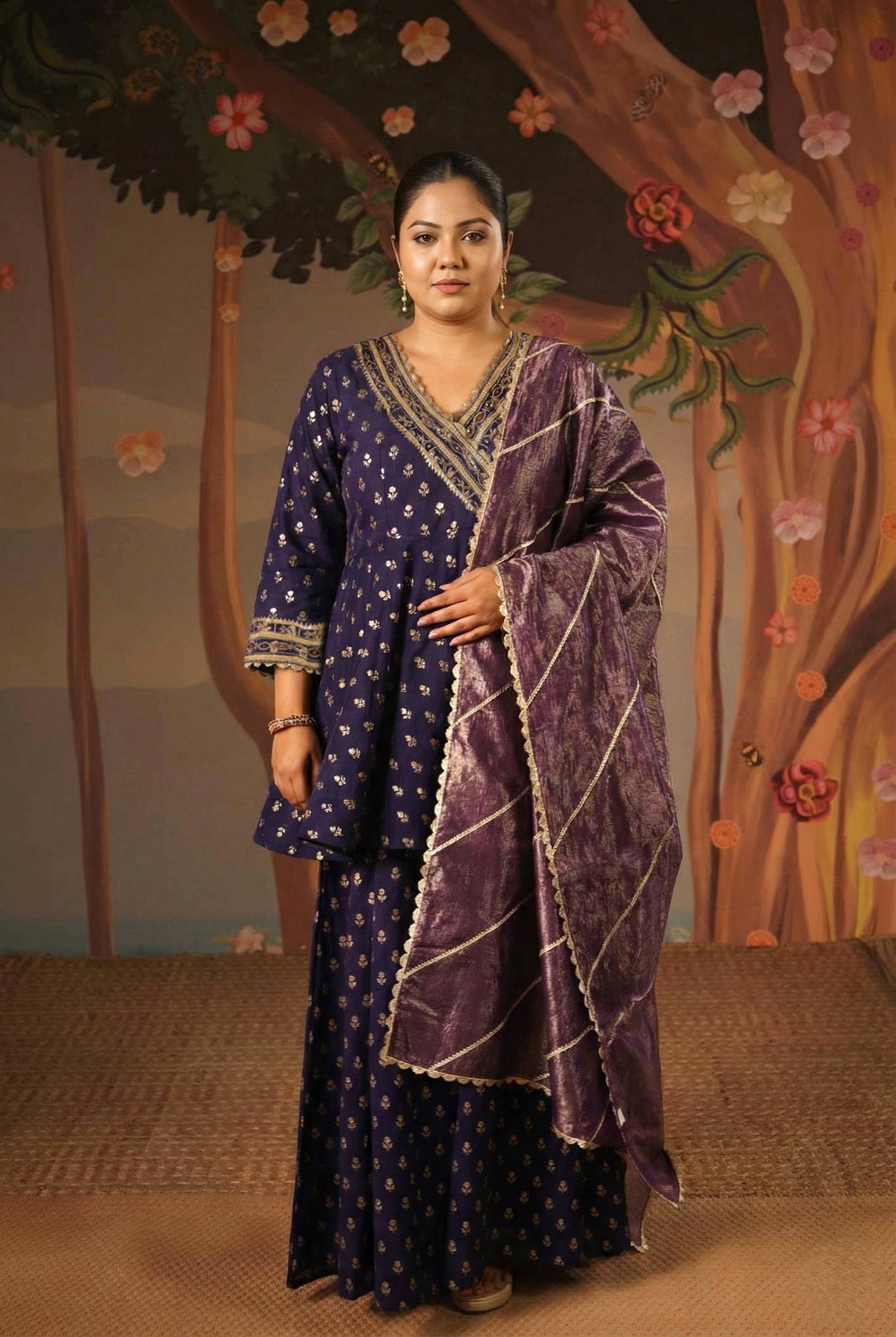 Flattering: The short Angrakha and flared sharara create a beautiful, flowy, and balanced silhouette.