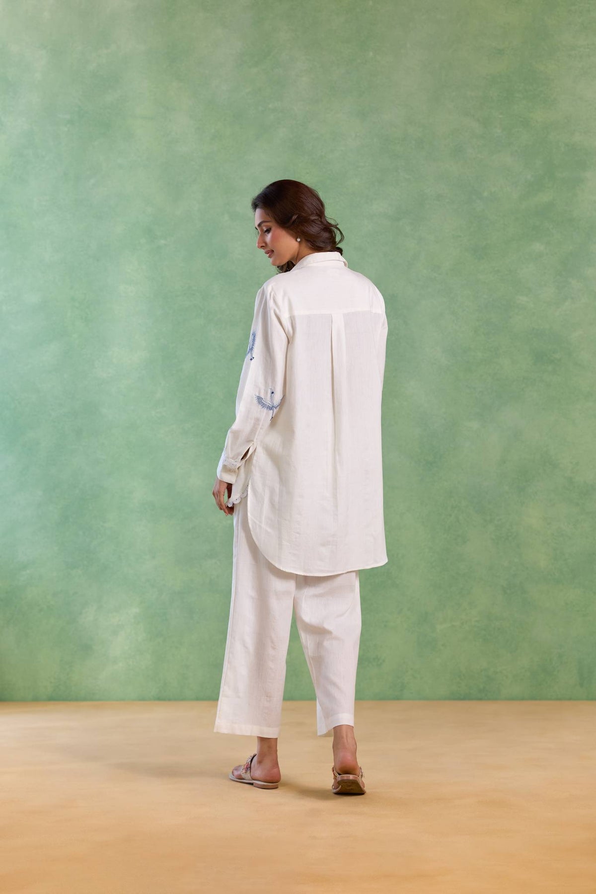 The White Floral Embroidered Handloom Linen Top is crafted from breathable handloom linen, featuring delicate floral embroidery that adds a touch of understated elegance. Designed for effortless style and comfort, the coordinated set offers a refined look perfect for daytime gatherings and relaxed occasions.