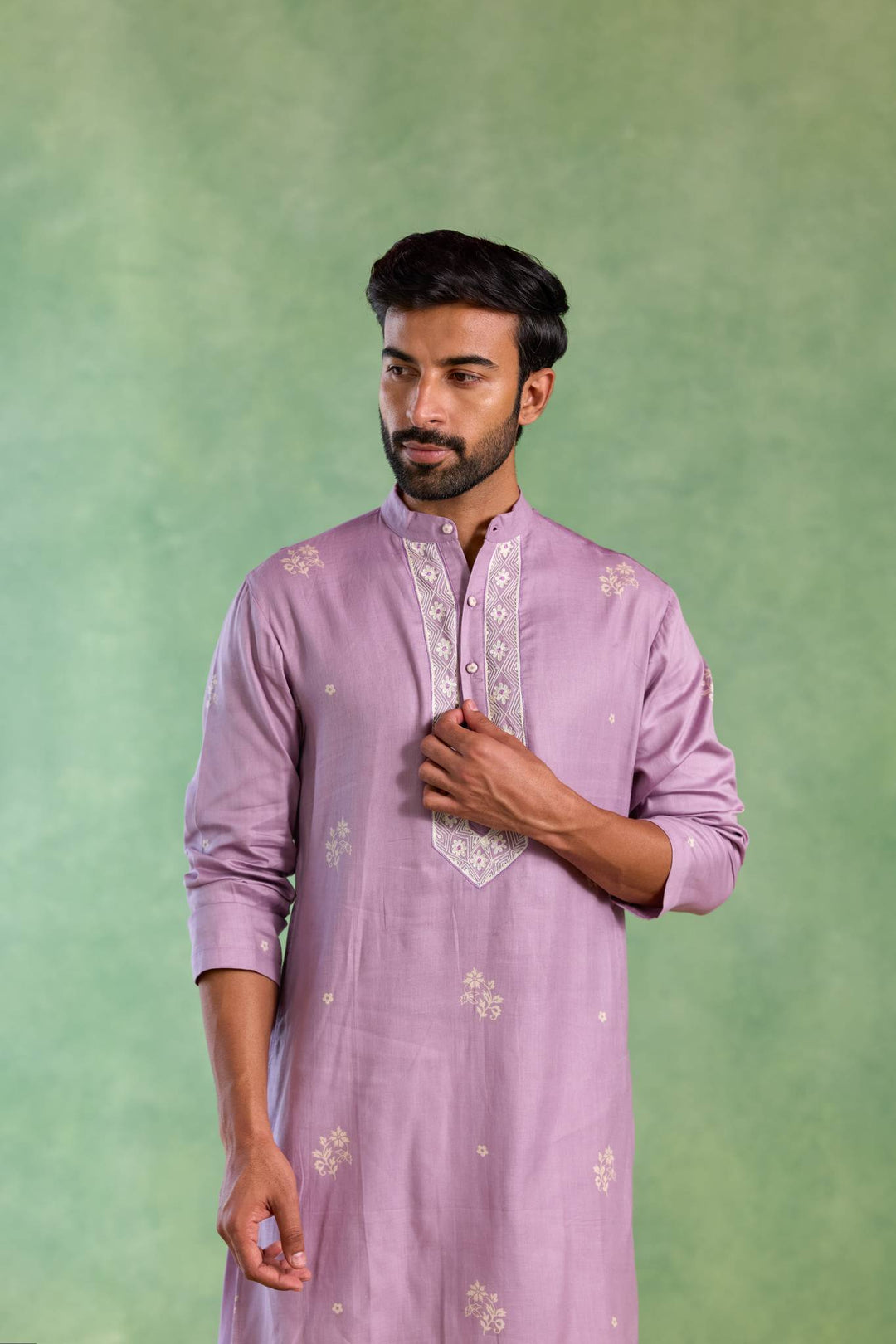 Gold Zari Yoke Stripe Embroidered Kurta with Narrow Pants